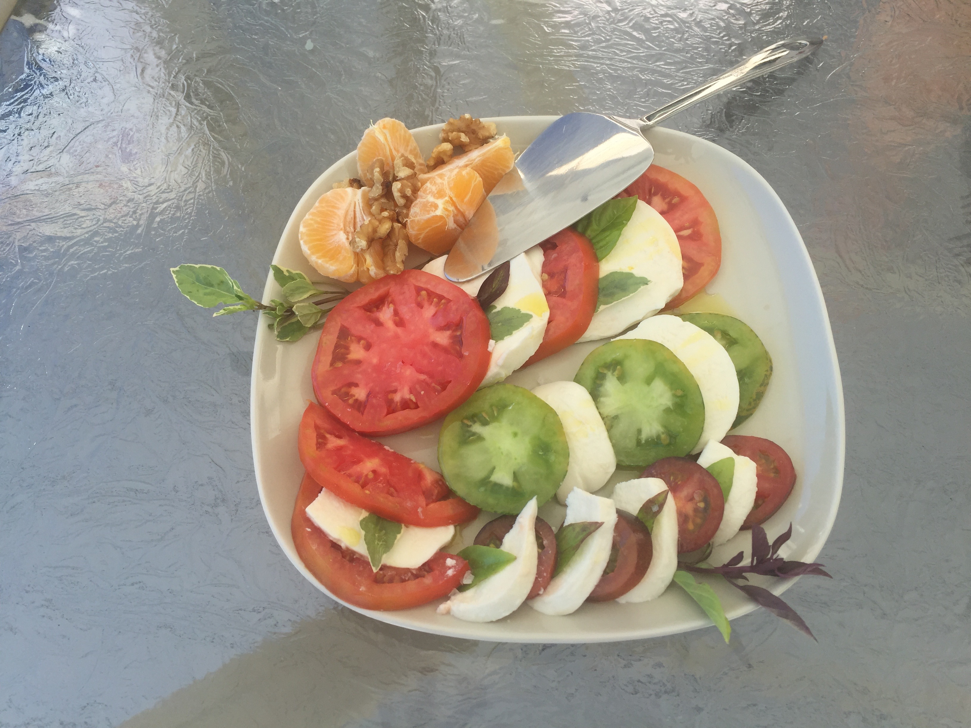 There is nothing quite like enjoying a caprese salad sitting outside on a beautiful day, other than enjoying a caprese salad whenever you can get your hands on perfectly ripe tomatoes, mozzarella, and basil. For the salad below I used some tomatoes from my garden and heirlooms that I purchased along with three kinds of basil from my garden. Try it now for that last taste of summer!