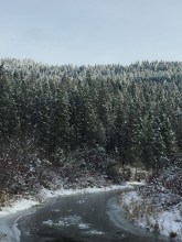 This winter view of the river is lovely.  It is hard to believe that I tube down the same river in the hot summer months! This is one big tree! The sun slips behind the mountains early on a winter afternoon.