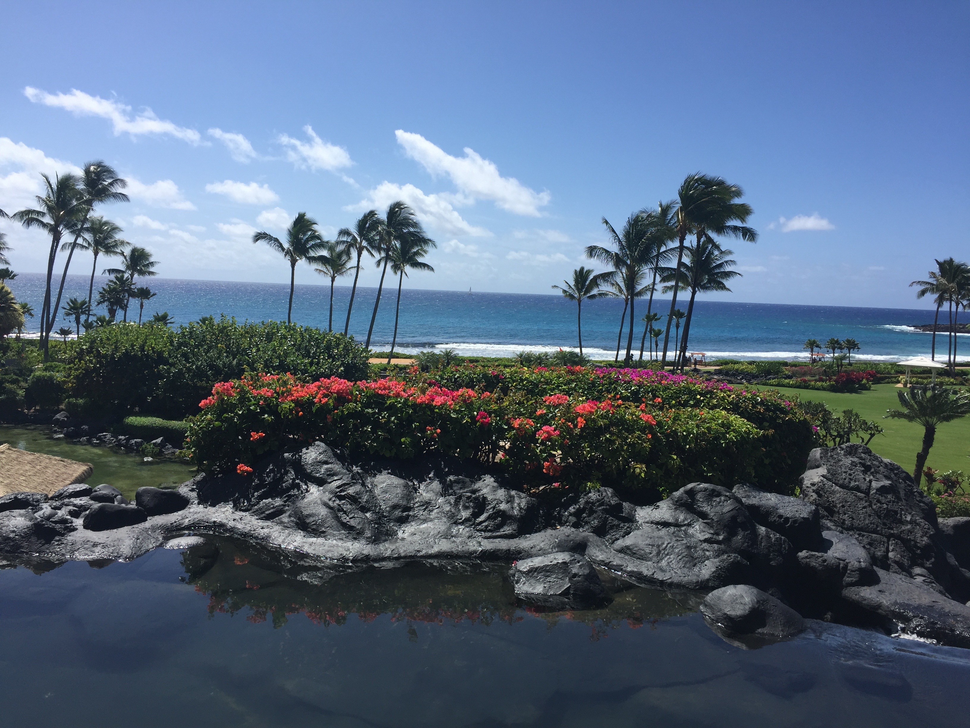 The Kauai Hyatt has a very large sand-salt water pool that is perfect for swimming laps. It lies between the hotel and the ocean and it was one of the reasons I love to go back and stay at this property.