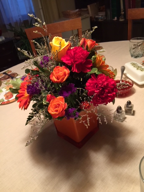 Pictured is my mom’s Thanksgiving table in 2016. I often sent her flowers for Thanksgiving so she would know I was with her in spirit. Edie loved cooking for her family and friends. Even as it became more difficult to prepare the Thanksgiving meal, it was important for her to keep the tradition, one she shared with so many throughout the years. (Thanks to Nancy for these special pictures of mom’s last Thanksgiving table:)