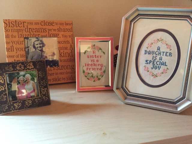 Jill cross-stitched for me, the very similar piece my mom had given me, unbeknownst to the other!