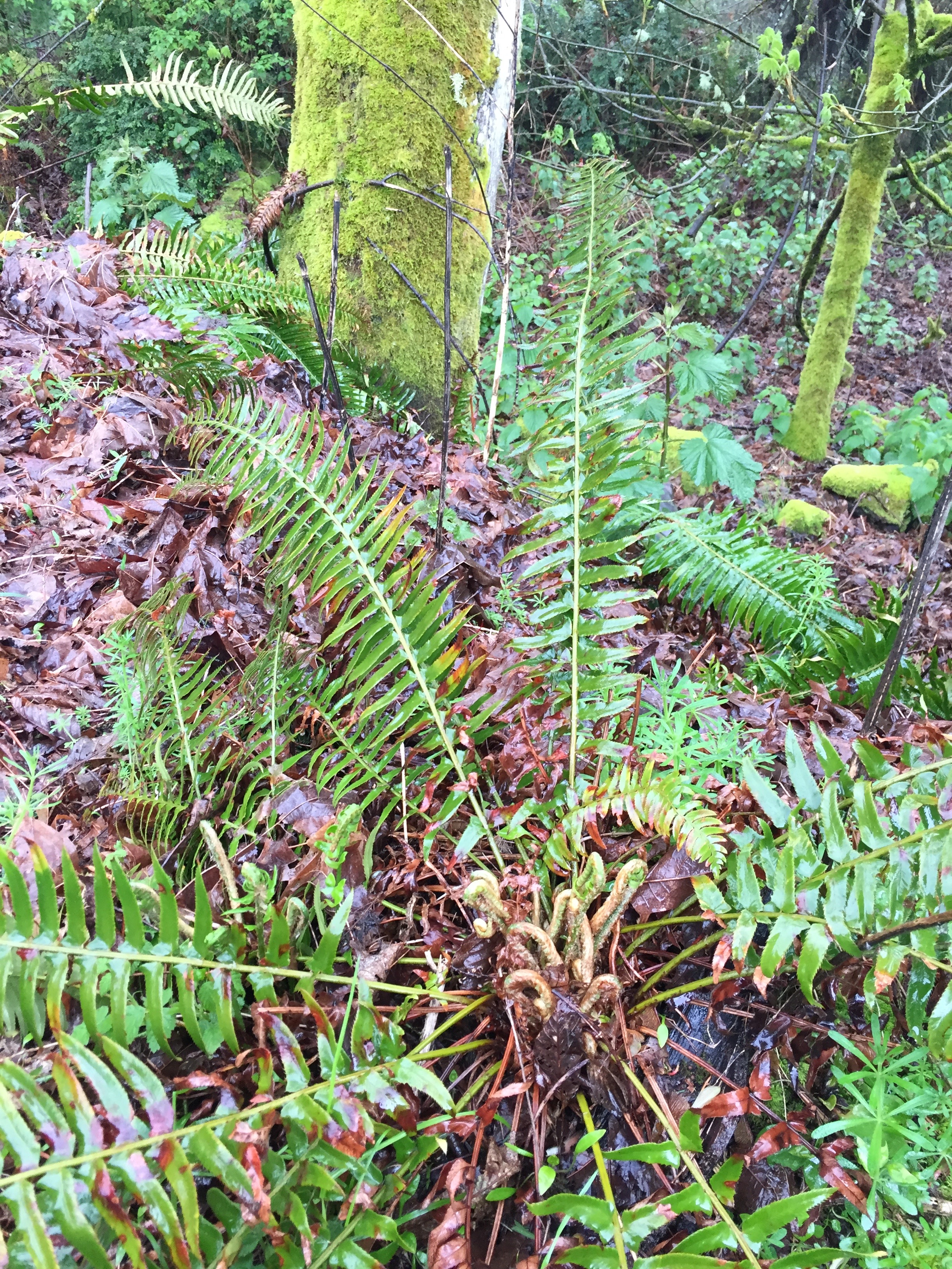 The new growth on this Western Sword Fern is called fiddlehead!
