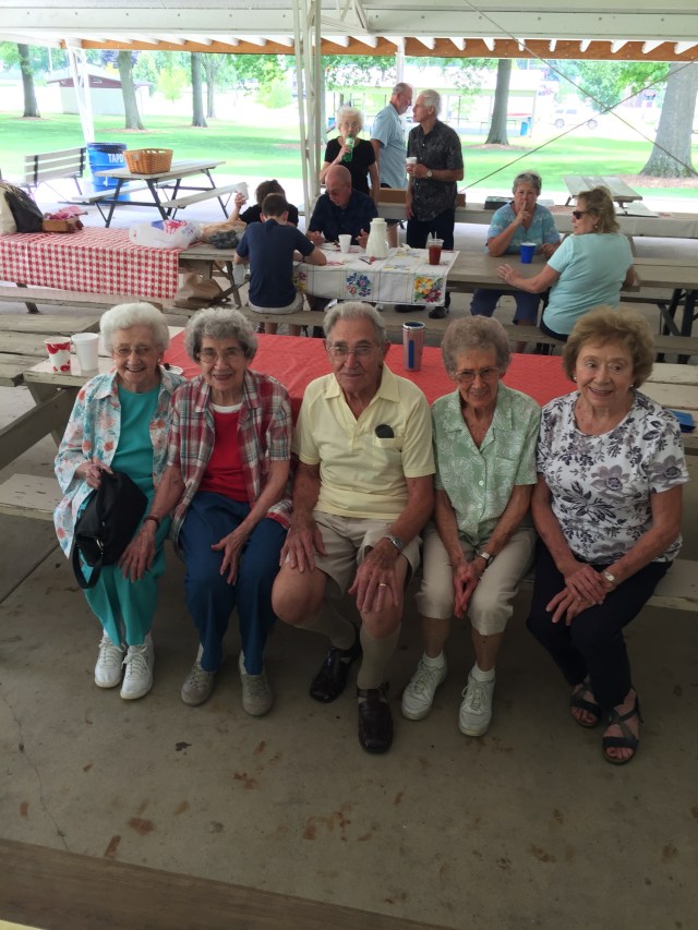 This photo was taken at the 2016 Unsicker Family Reunion in Tremont Illinois. My mom Edie Albright (in green), passed away on 2/25/17, and her sister Lark Frederick (in red) passed away yesterday, 5/27/18. They were only two years apart in age and very close growing up on their farm. It is ironic to me that my Aunt Lark passed away on Memorial Day weekend, that special time we honor her husband who gave the ultimate sacrifice for all of us. She was such a special woman who was admired and loved by her large extended family.