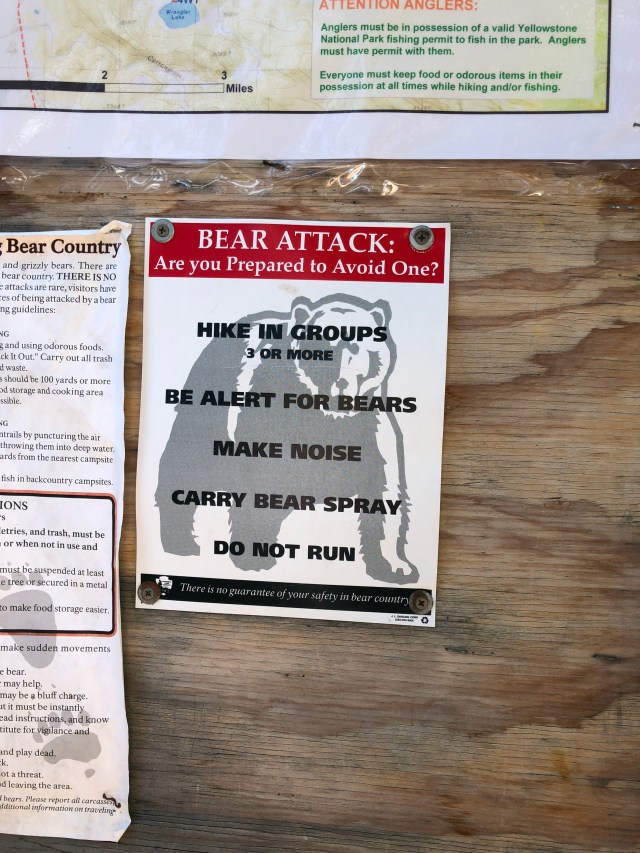 As we left the Old Faithful area on our third full day in the park and headed north to Mammoth Hot Springs, my sister had a smile on her face, but I think these bear warning signs everywhere were making her a little uncomfortable:)