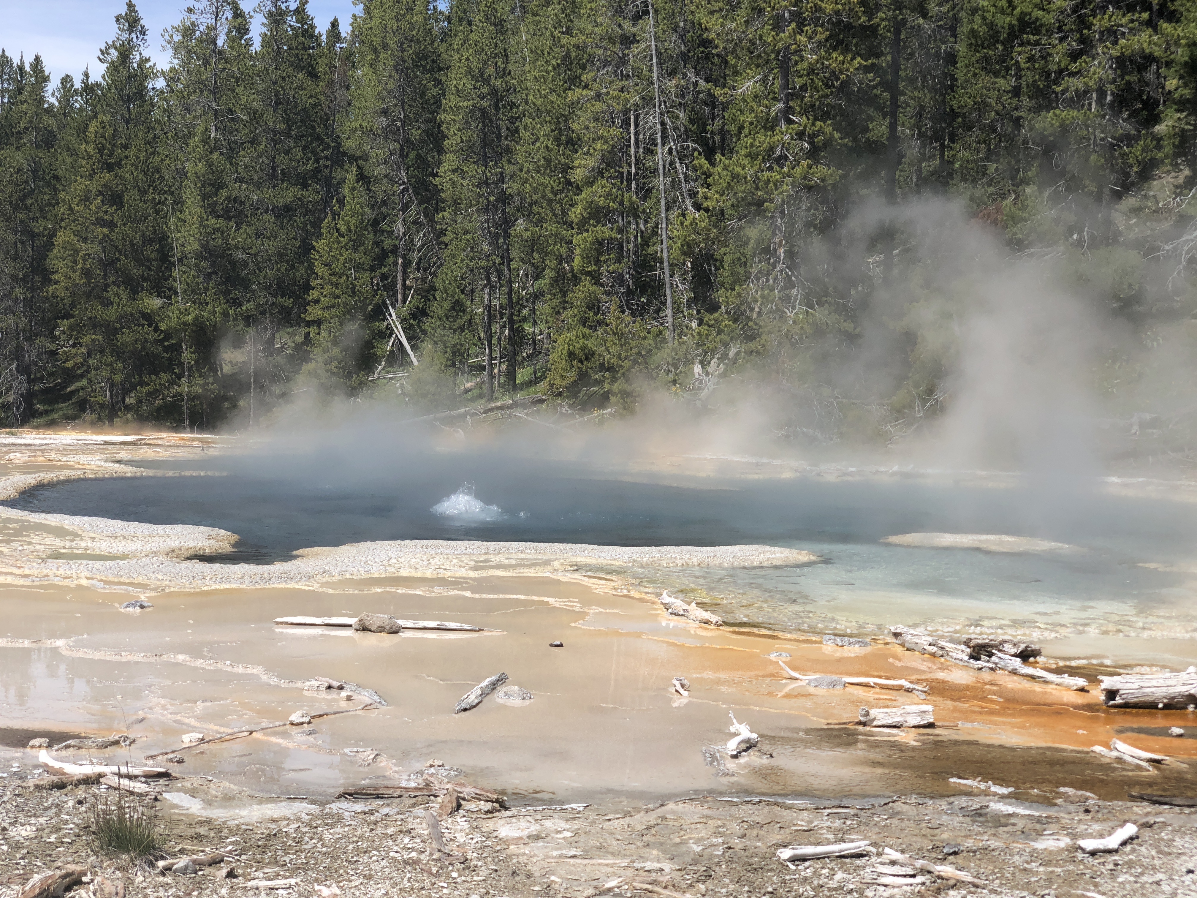 Although the weather was marginal when we first flew into Bozeman, by the time we got down to Old Faithful we had some blue skies.