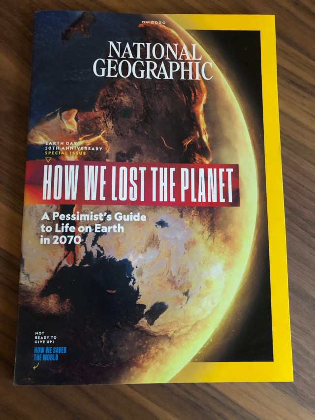 National Geographic Magazine was delivered to our home every month and when I became an adult, my mom purchased it for my family as a gift. And it is truly a gift! The April 2020 edition is the first ever flip issue to look at enviromental milestones of the last 50 years and look forward to what our descendants might inhabit on Earth Day’s 100th anniversary.